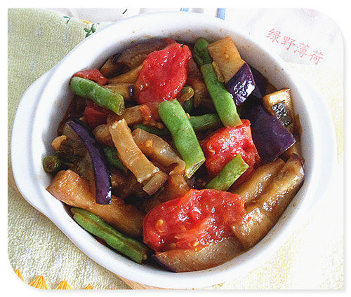 7:中火炖至豆角熟透,茄子软烂,放入盐味精,出锅前淋香油即可