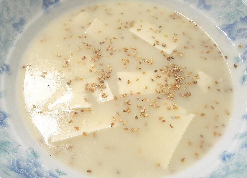 8:将豆腐入锅,加少许盐与鸡精小火熬制5分钟,撒上炒熟的白芝麻即可出锅。