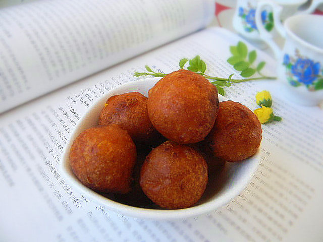 火不要忽大忽小,否则炸的不圆,炸的金黄需耐心等待。