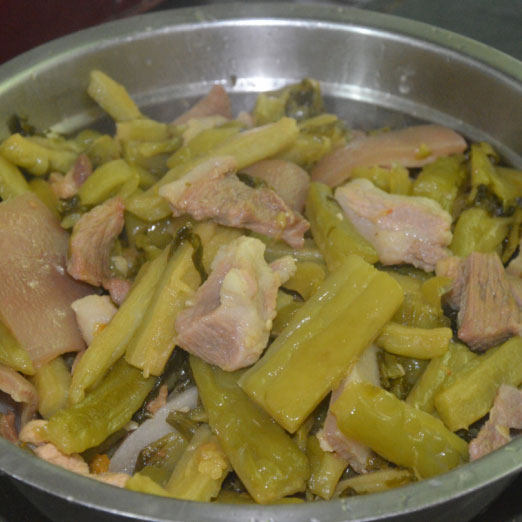 苦瓜要焖到软烂才好吃,酸菜本身有点咸所以不能加太多酱油。