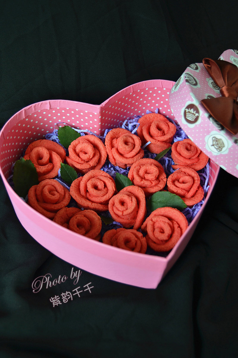玫瑰酱饼干制作方法简单,以低筋面粉、黄油、糖粉和鸡蛋为基础原料,加入香甜的玫瑰酱。先将黄油软化后与糖粉打发,再分次加入蛋液混合,接着筛入面粉揉成面团,最后拌入玫瑰酱。将面团整形冷藏后切片,放入烤箱烘烤至金黄酥脆即可。成品色泽诱人,口感酥松,玫瑰花香浓郁,是家常点心的不错选择。