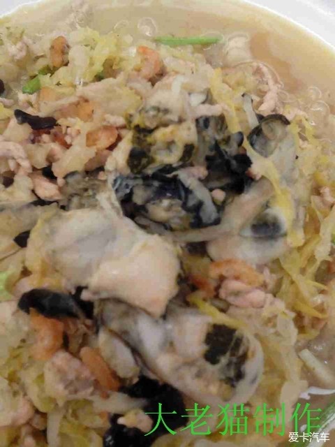 7:6)然后加入水或汤,再加入海米、木耳、粉丝、胡椒粉,盐调好口味,改用小火煨炖一下,最后,加入海蛎子;淋入椒油,撒上香菜段,装盘即可食用