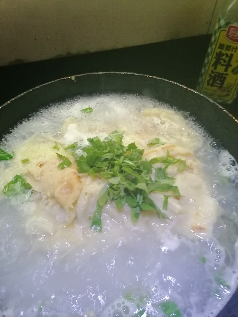 3:把锅烧热倒入开水,待水开了再倒入锅边糊片煮软捞起。