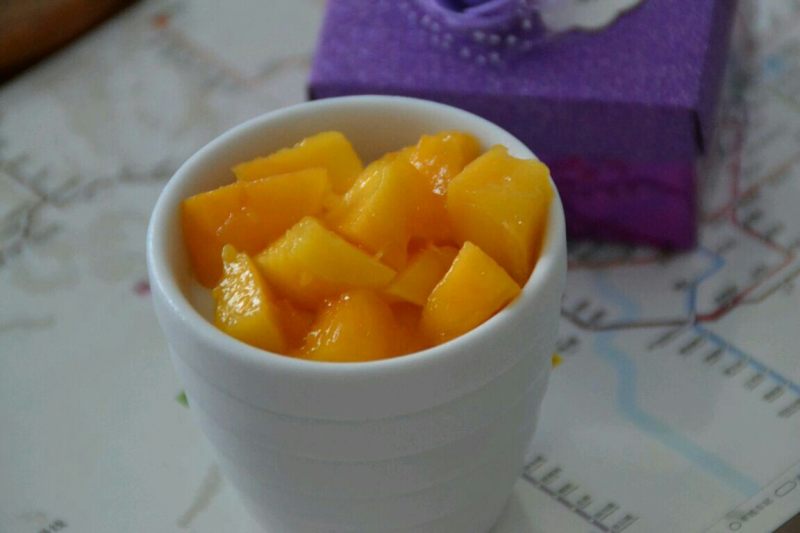 5:放凉后,就是最后的点缀了:芒果切小丁