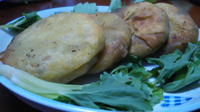 13:最后,取平底锅置火上倒油,下入包好的馅饼,用中小火煎至两面金黄,即成。