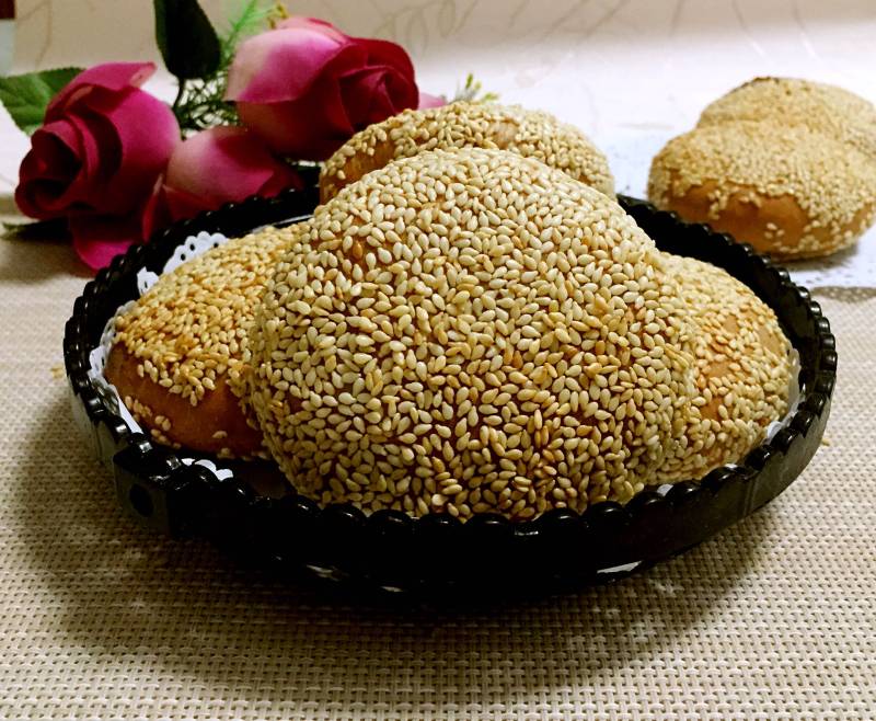 10:平底锅烧热刷油,有芝麻面朝下.