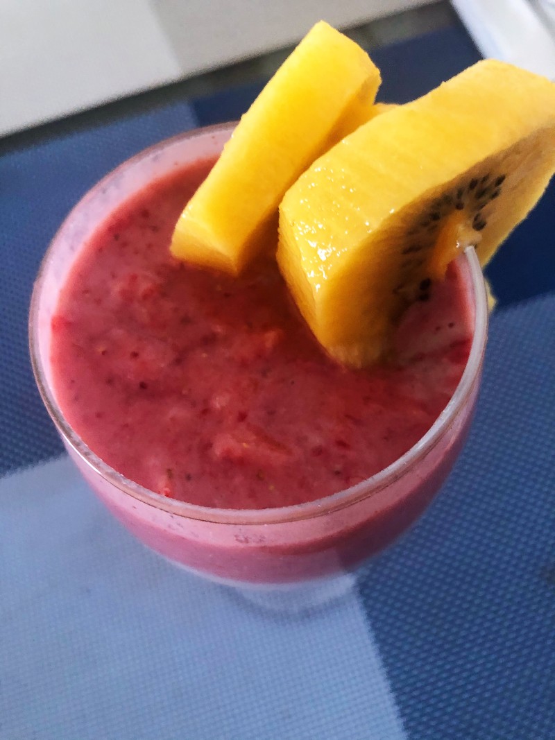 3:草莓去掉根部,放入破壁机打成草莓羹。