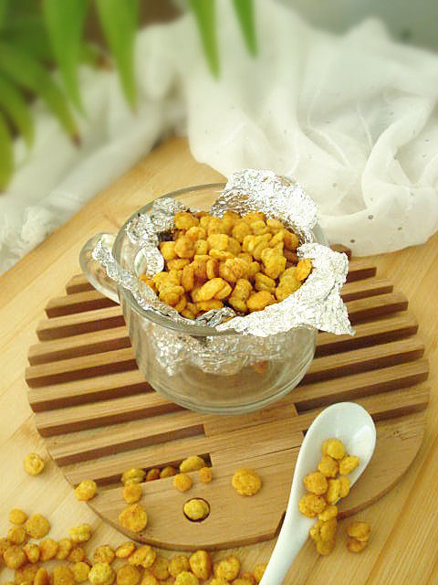 2:锅中放少许植物油,放入玉米片小火翻炒,炒至玉米片变脆即可