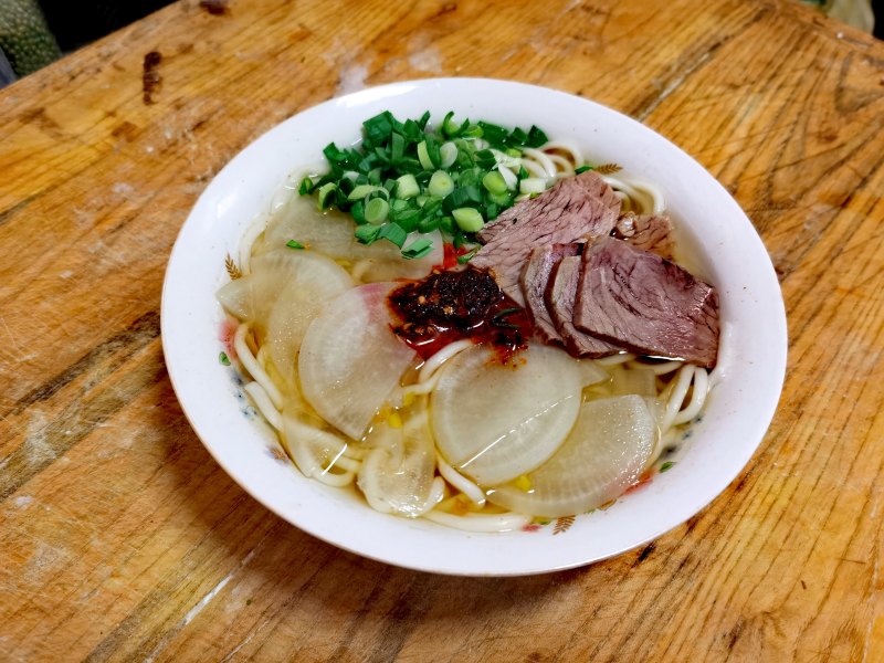 白萝卜1个;熟牛肉300g;生面条适量;