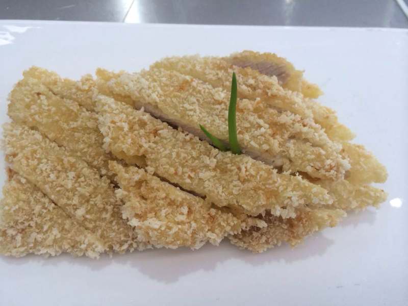 猪里脊肉300克;鸡蛋2个;面包糠100克;