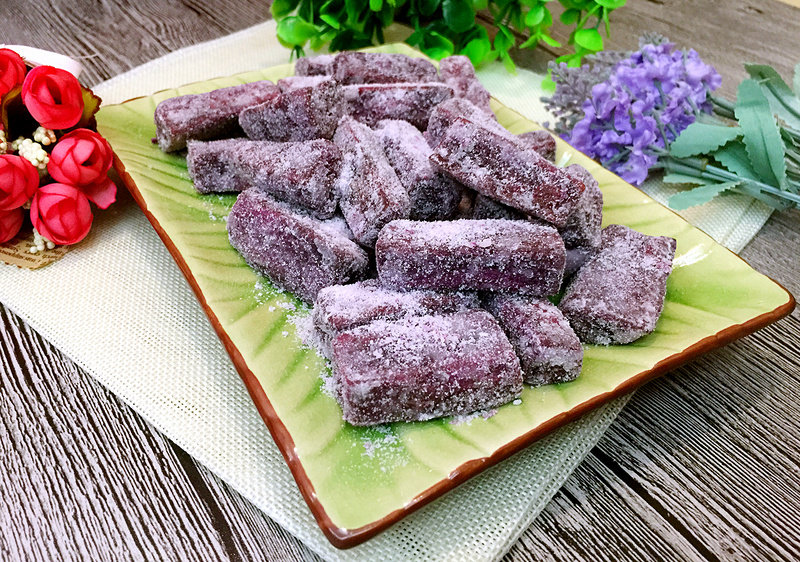3:锅内放多些油,放入紫薯,中小火,炸。