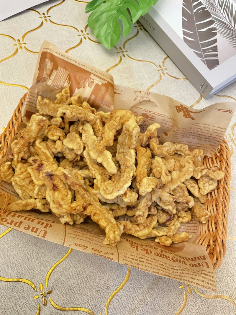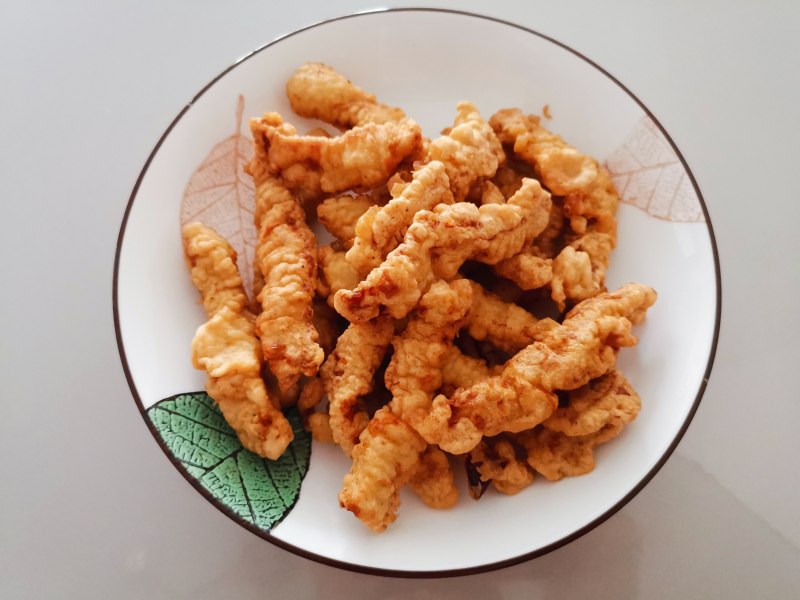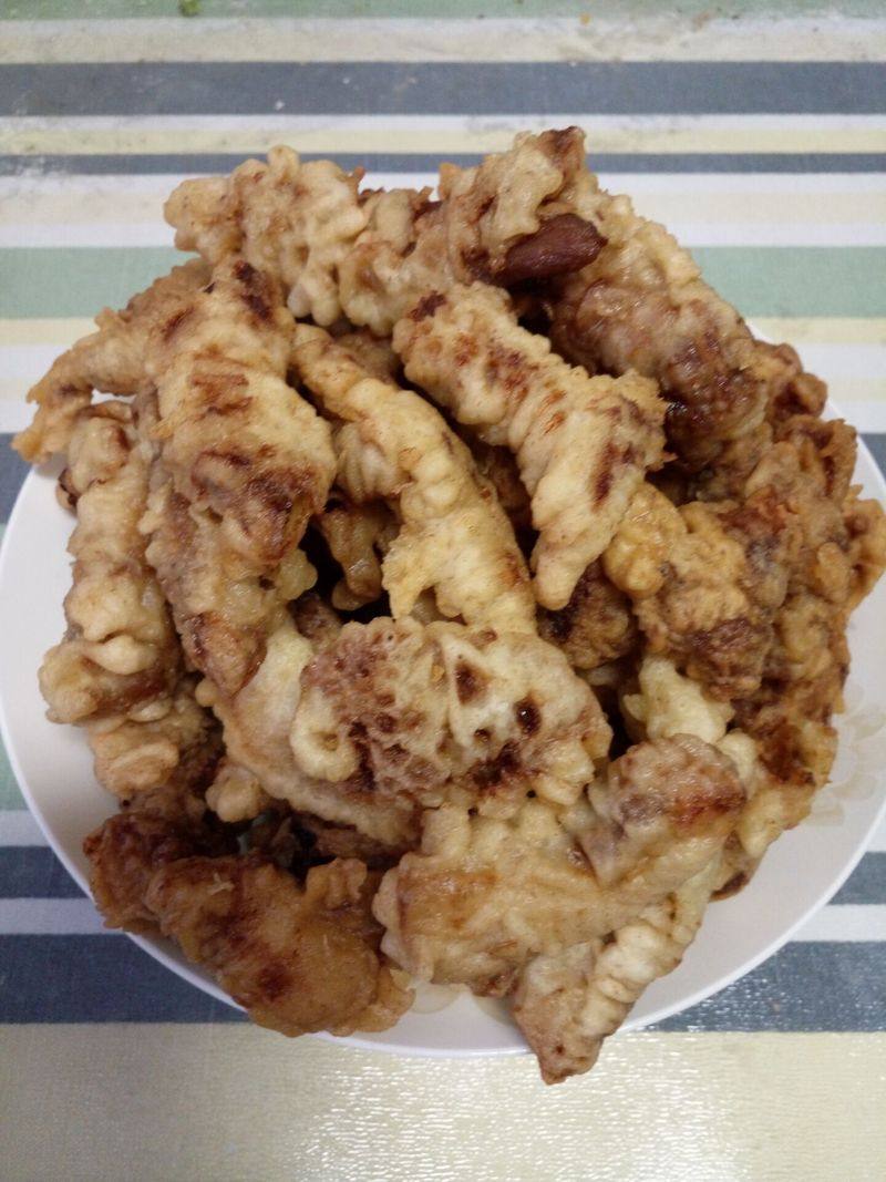 面糊要粘稠适度,下锅速度要缓慢,否则会互相粘连,炸至金黄色后,捞出,待油温回升到八成热时,再放入复炸·,外焦里嫩,配以椒盐上桌口味绝佳;也可作为其他炖菜的佐品,提升菜品色泽和口感,是百姓餐桌不可多得的美食。