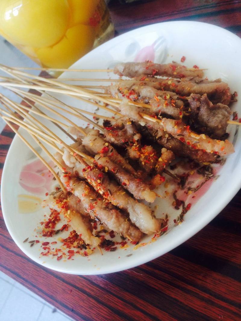 5:油热后加入肉串,炸肉串时以防粘连要将竹签来回分开~