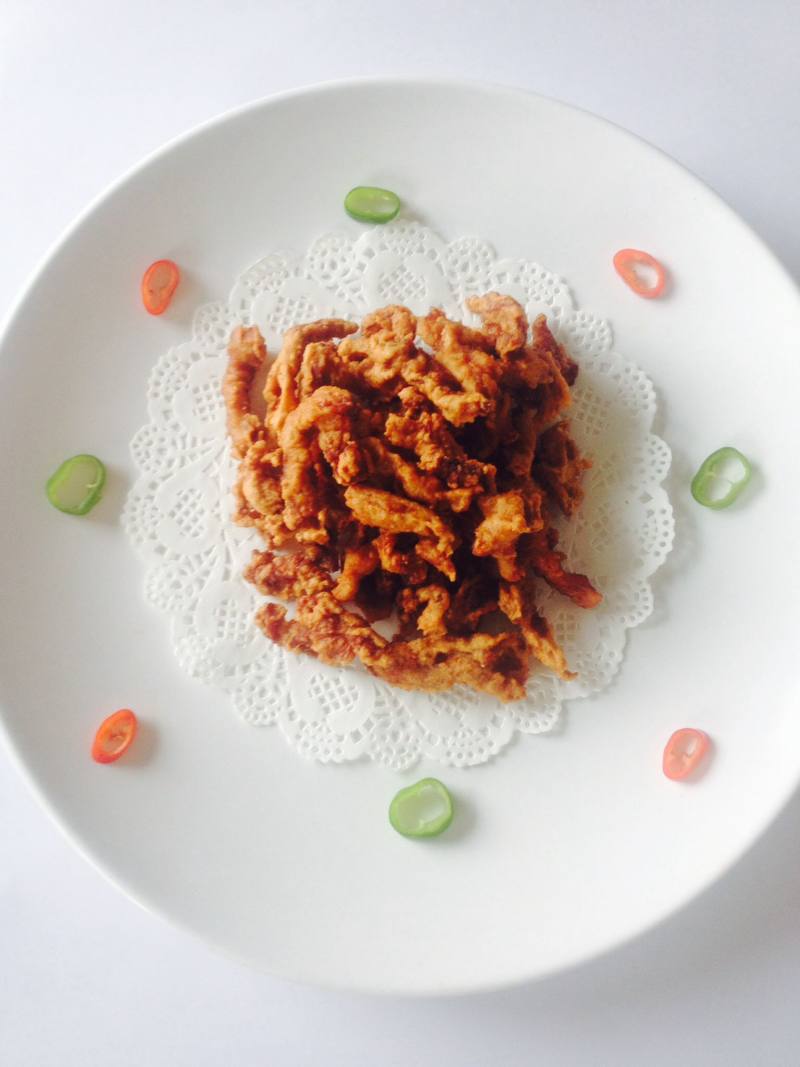 碎碎念:面糊一定不能有颗粒不然下锅炸的时候油会溅。面糊不能干,干了肉就会裹上厚厚的面糊,炸出来不好吃面糊稀了就挂不住。