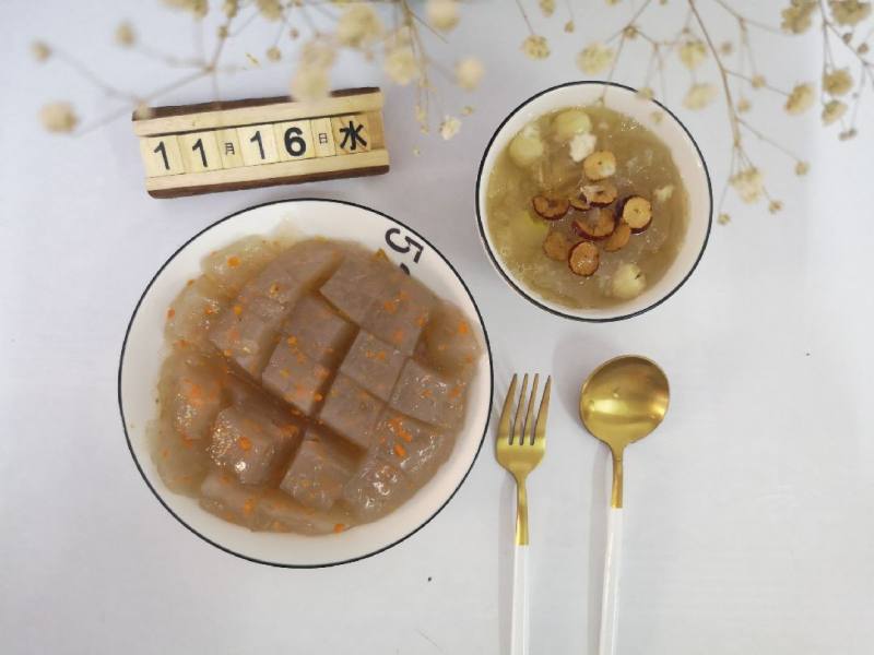 6:银耳雪梨羹:银耳,雪梨,莲子,皂角米,冰糖直接煮,出锅加点红枣片。