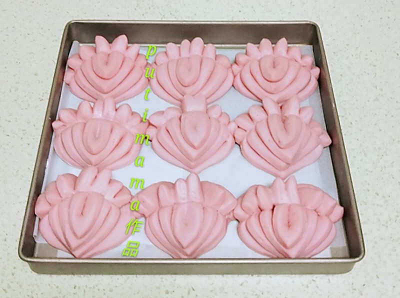 16:蒸好的玫瑰包,只是鲜亮的粉色遇热变成了肉粉色了,还是很喜欢的,味道超赞!