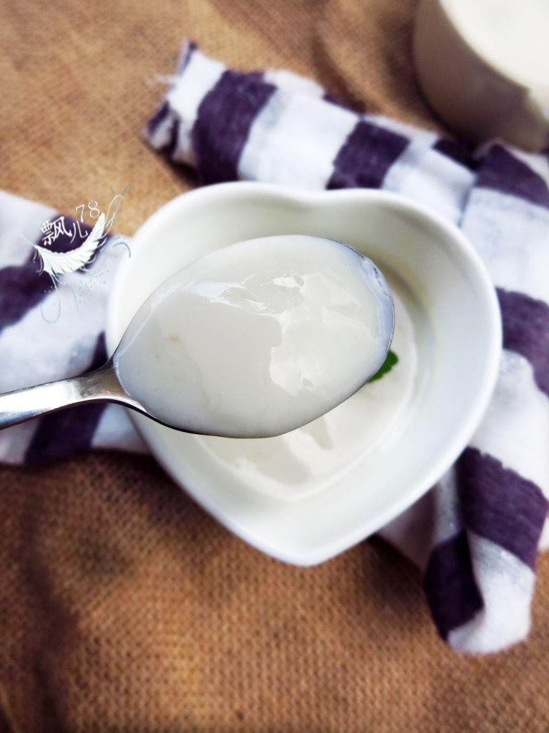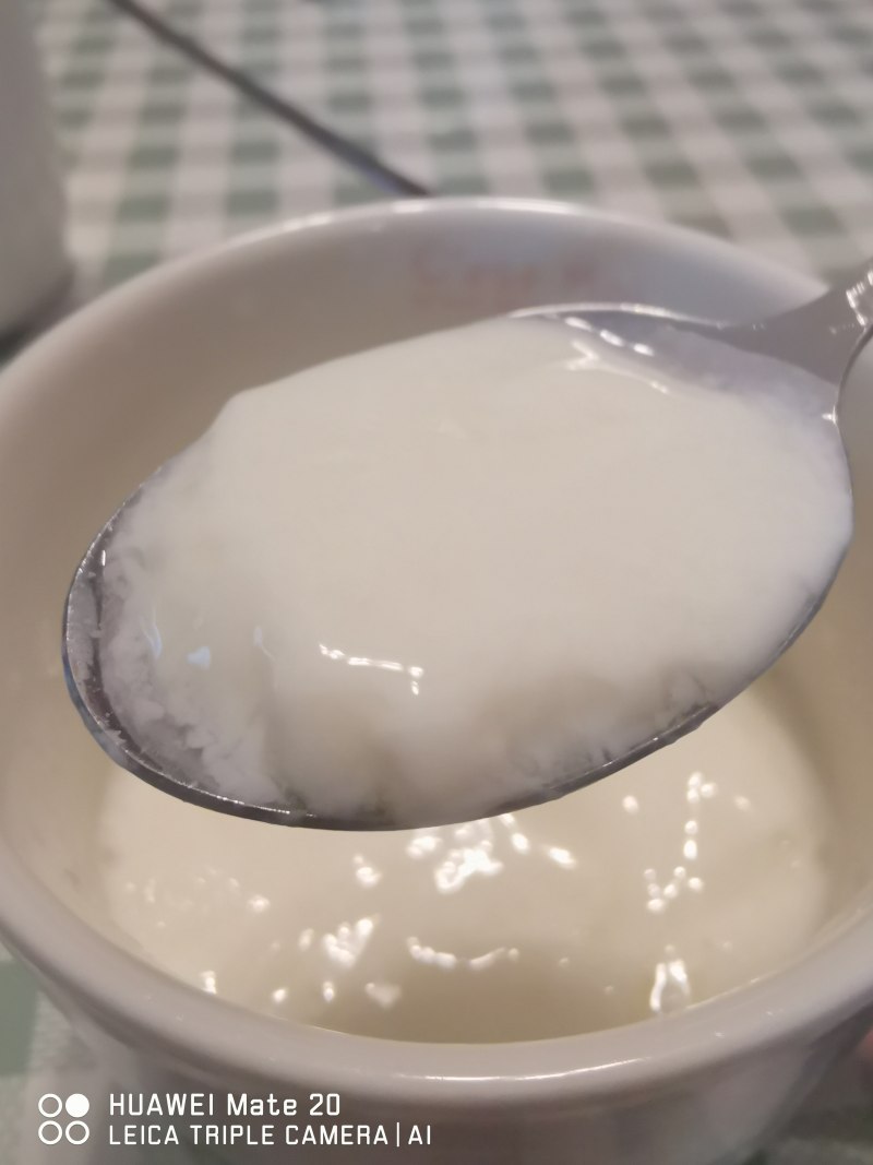 7:凝固以后就可以食用了,豆腐脑一样。喜欢水果的可以放一点。我放了芒果。也可以不放。