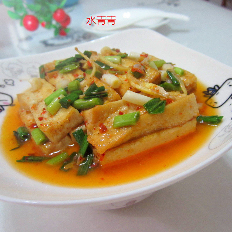9:把鱼香汁淋在豆腐上,撒上小葱即可。