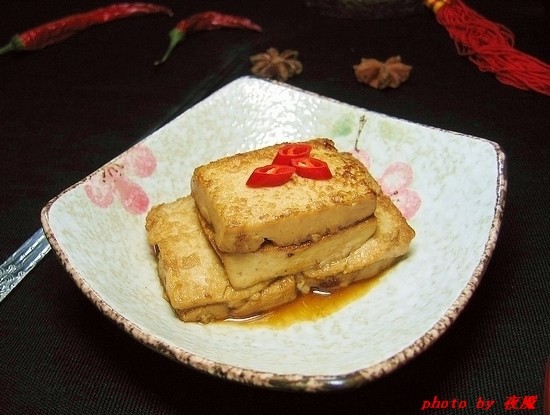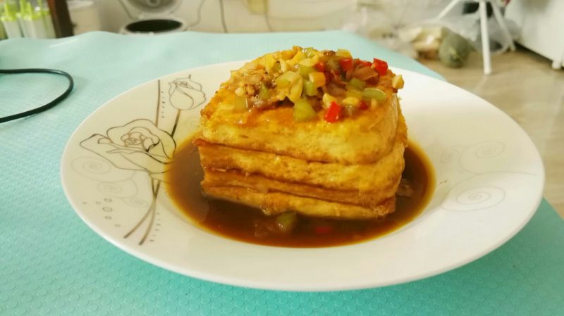 Ps:1、嫩豆腐在煎的过程中容易碎,不过煎好后很嫩很入味儿。(其实我在煎的过程中就弄碎了两三块O(∩_∩)O))2、豆腐在放盐的冷水锅中焯水可以去除豆腥,全程小火慢煎。3、我将嫩豆腐放入酱汁中浸泡,感觉可以吸收酱汁的味道。(或者,是我的错觉?)4、调料的多少根据食材来定,当然,你也可以加入盐,醋,或者老抽,或者花椒干辣椒等等。下次用老豆腐煎来尝下,我猜,应该会有酥脆的外皮。O(∩_∩)O
