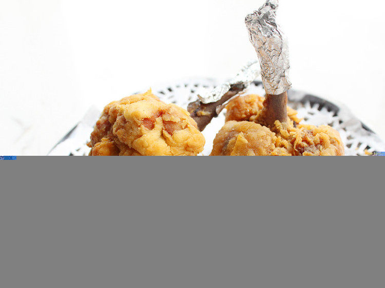 9:炸好的鸡翅根放吸油纸上吸去多余的油脂,用锡纸把露出的骨头包裹一圈,既美观又方便食用。