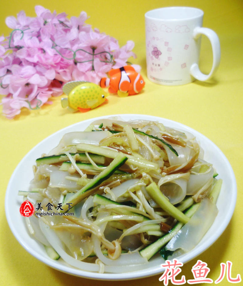 黄金针菇105克;青瓜丝150克;凉皮225克;