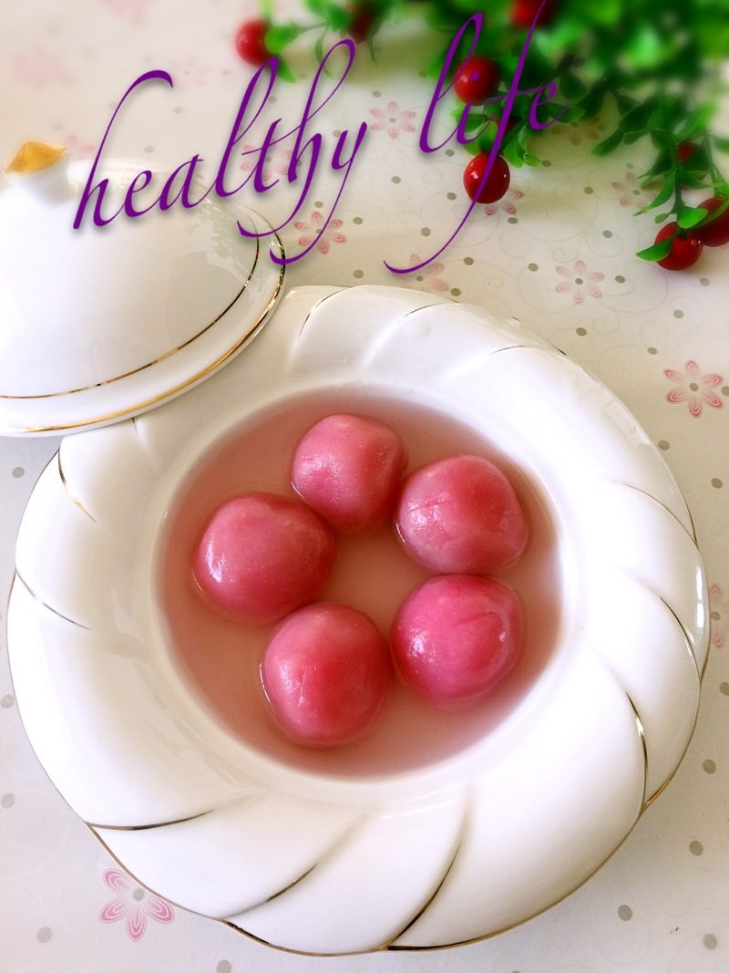 13:下锅里开始煮汤圆,好漂亮的颜色啊,呵呵,分三次加入凉水,直到汤圆飘起来