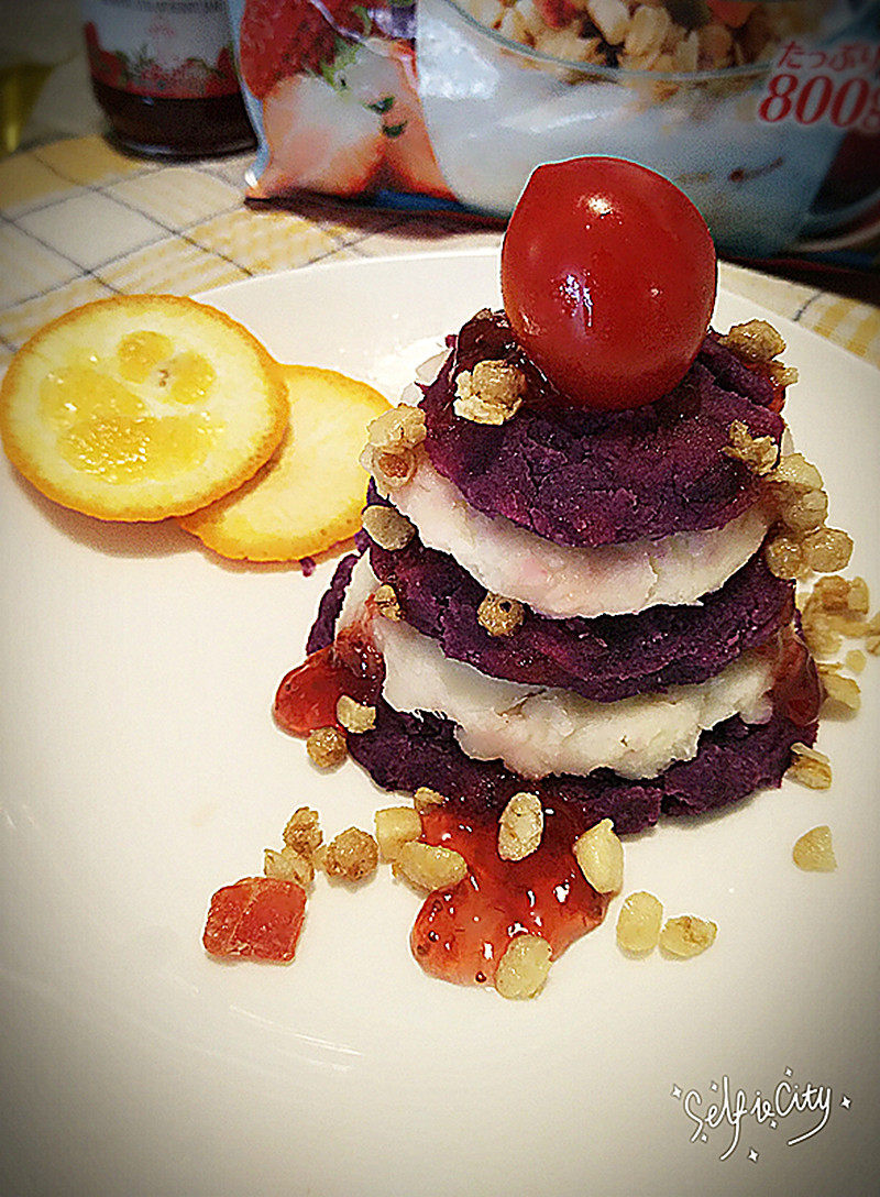 紫薯适量;山药适量;果酱适量;即食麦片适量;圣女果适量;