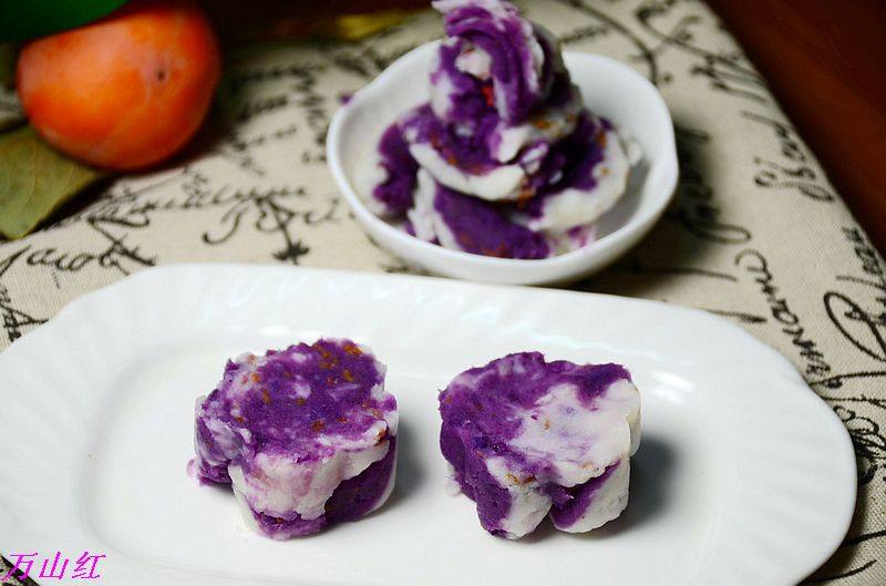 4:50g的月饼模具,分别放入紫薯泥和山药泥