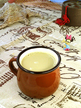 5:将豆浆过滤后倒入杯中即可食用,加入南瓜的豆浆色彩很诱人。