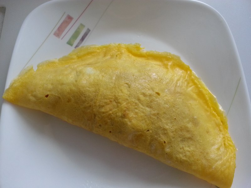 5:把鸡蛋打散,摊成鸡蛋饼,把炒饭放在鸡蛋饼的一侧。