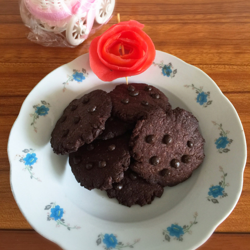 低筋面粉130g;黄油100g;巧克力豆50g;细砂糖40g;鸡蛋一个;可可粉4g;小苏打粉2g;