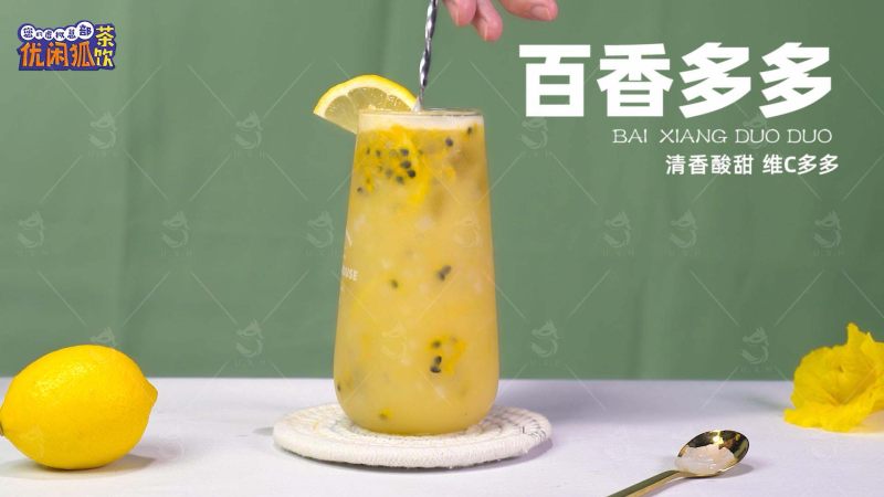 冰水200ml;乳酸菌20ml;黄金果糖25ml;冷冻百香果汁30ml;冰块150g;黄柠檬2片;