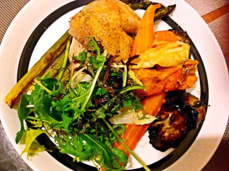 烤鸡及蔬菜