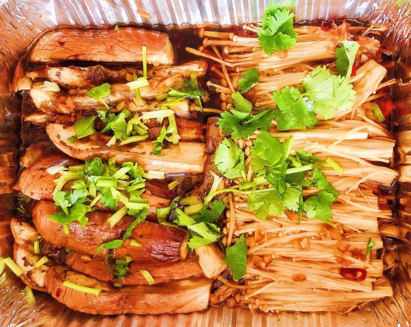 茄子2个;金针菇300g;