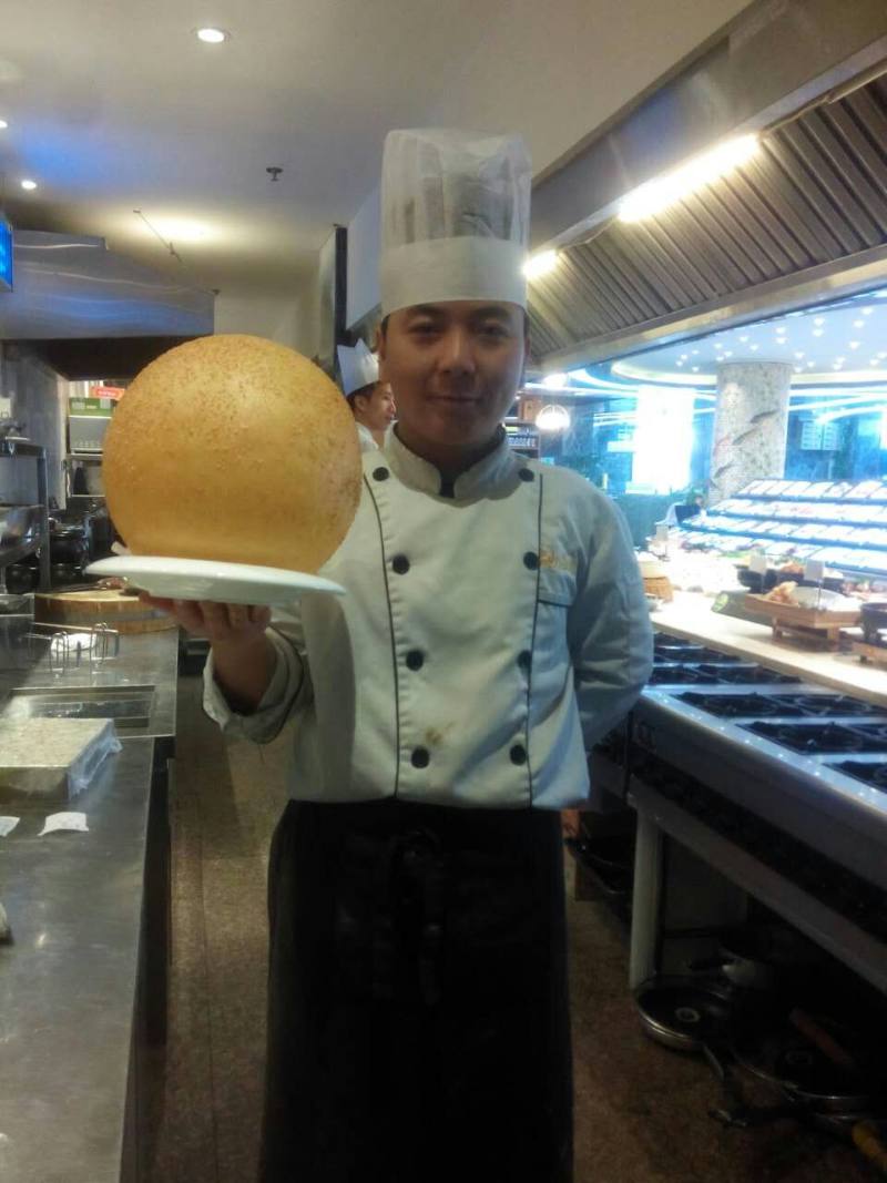 7:一个麻球可以炸到篮球大小,吃用筷子敲破就可以,微甜带走芝麻香气。好看有特色。