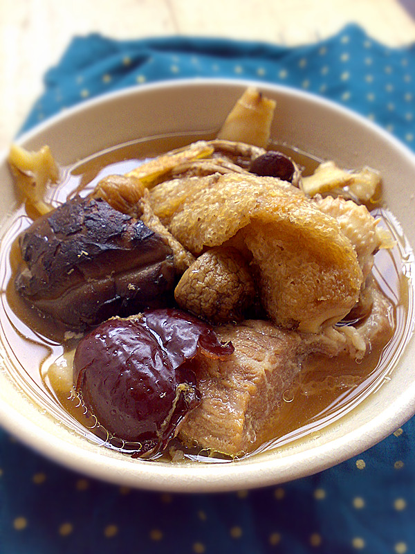 5:放入红枣、桂圆。转小火,慢慢炖制到鸡肉酥烂,汤头鲜美,约2个半小时-3小时。