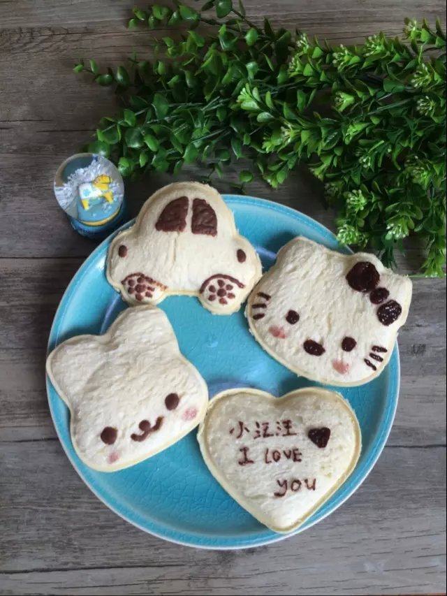 1.膜具和笔淘宝上都有卖,而且非常便宜。可以搜索{三明治膜具}。2.面包片一定要选好,这是关键,如图表面没有什么大洞和裂痕。面包片选的不好,形状压的时候会坏,可以下一层用不这么好的,上一层用好的。3.剩下的面包边也不要浪费,蘸多余的酱也非常好吃。4.有宝宝的,这还是一场不错的亲子活动。