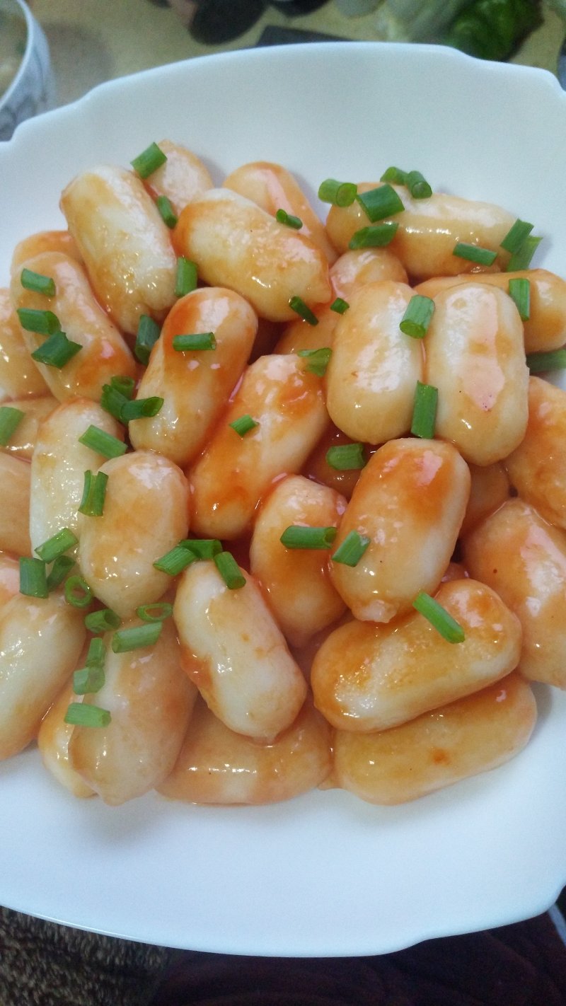 3:放入芝士年糕,煮过的很容易熟,茄汁快煮干就可以了。