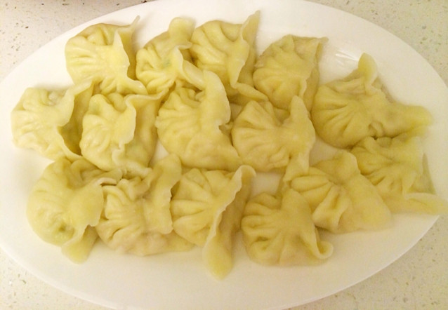 10:放馅在中间,褶出花行,成元宝状即可。当然各地的包法不一,所以就不教包法叻。