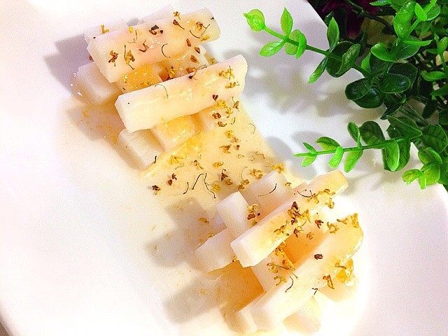 1:新鲜的山药洗干净之后然后带皮隔水蒸十分钟左右,根据山药情况而定哦喜欢脆一点的时间短一点