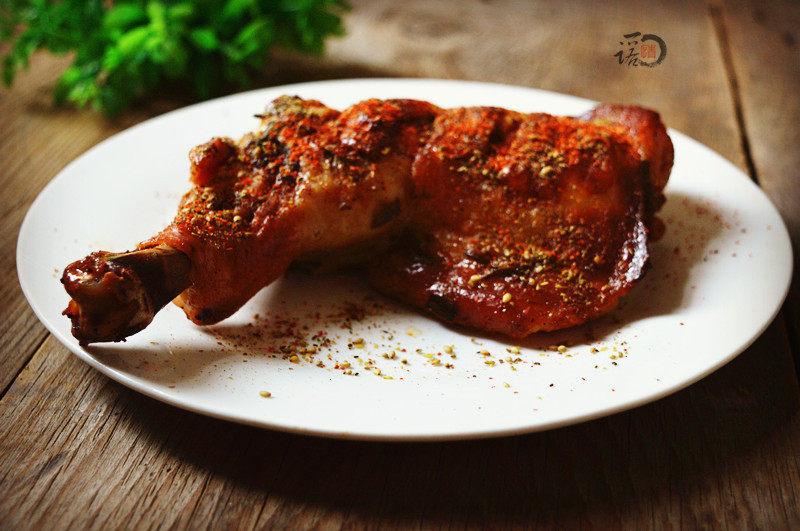 8:腌制好的鸡腿放入烤箱烘烤30分钟
