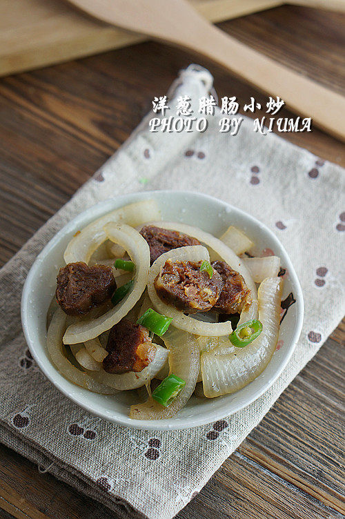 香肠炒洋葱是一道简单快手的家常菜。主要配料为香肠(广式腊肠或普通香肠均可)和洋葱,可搭配青红椒等配菜增色添味。做法通常为:先将香肠切片或切段,洋葱、辣椒等切块或丝;热锅少油煸炒香肠至出油微卷,盛出备用;用锅中余油爆香洋葱至半透明或微焦,再加入辣椒等配菜翻炒;最后放回香肠,加少许生抽、盐、糖等调味,快速炒匀即可出锅。成菜咸香微甜,香肠的油脂与洋葱的甜味融合,非常下饭。