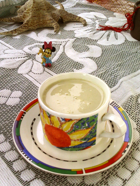 3:加入奶粉搅拌均匀,加几滴柠檬汁去腥味