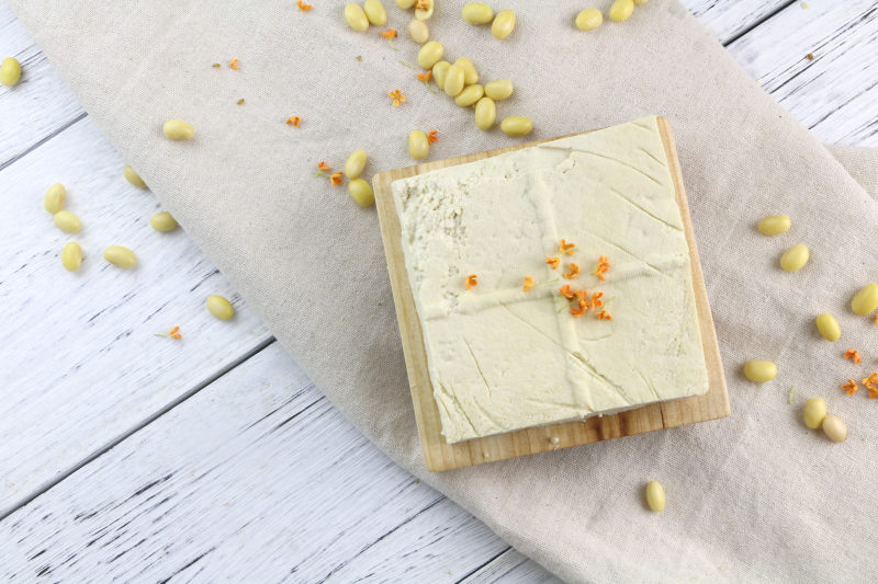 8:盖上纱布,并用重物压出水份,豆腐就做好了