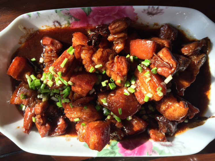4:肉炒刚卷,就放豆鼓,豆瓣酱一起炒。红亮为止