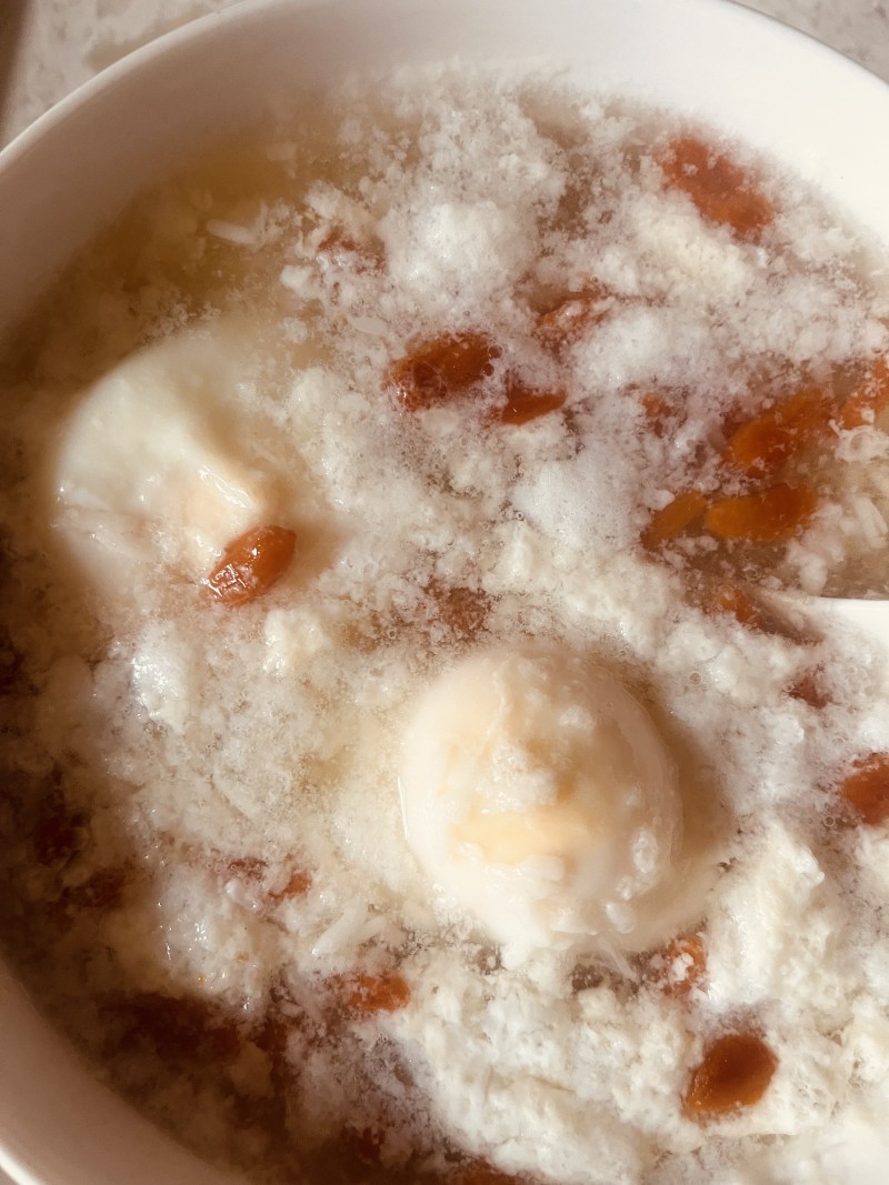 2:在清水碗里加入枸杞,红枣,冰糖,米酒。