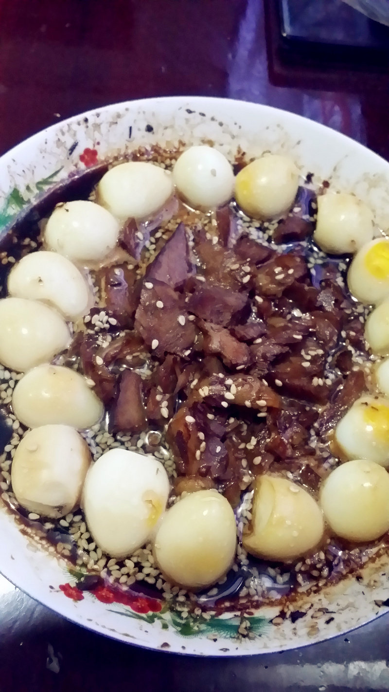1:盘子里我加了花生油,红糖,芝麻,酱油,再加上点花椒,辣椒一点点提味就好了,因为是煮熟的牛肉,咸淡上应该差不多,如果怕味道不行,尝尝再加