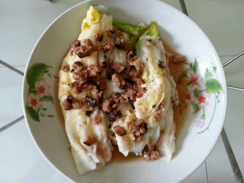 2:【二】蒸肠粉1粘米粉加水,比例大概1:2。或凭手感,搅拌觉得没阻挡刚好划顺即可。2鸡蛋打碗里搅拌好,葱花或青菜切好备用。3大锅加水煮至沸腾。4舀适量粉水到蒸盘,铺满整盘后加入鸡蛋,葱花或青菜(如加青菜需中途掀锅加少量油)5大概2分钟后起锅(肠粉和鸡蛋都蒸的鼓泡就可以),用小刮铲刮起装盘。6装盘后淋上特制姜汁即可食用。