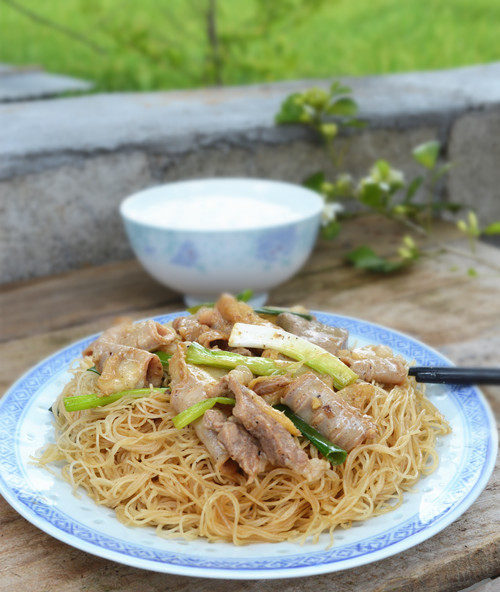 6:最后加进葱段并调味即可,不需要炒得太干,稍为留多些汁最后淋米粉。