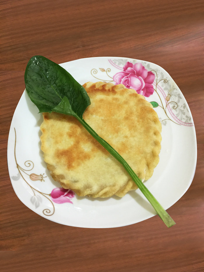 8:煎的过程注意要中途翻面,这样两面都能脆脆的。馅饼熟了出锅即可。(一般电饼铛两次自动灭灯就代表熟了)